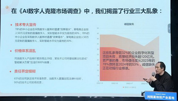 315記者攝影家網(wǎng)總編靳新國在主題報告中指出,AI數(shù)字人市場面臨三大誠信危機:78%中小企業(yè)遭遇技術(shù)宣傳夸大、價格體系混亂、責任界定模糊等問題,直接導(dǎo)致32%數(shù)字化轉(zhuǎn)型項目失敗。據(jù)中國互聯(lián)網(wǎng)協(xié)會《2024數(shù)字人發(fā)展報告》顯示,我國數(shù)字人核心市場規(guī)模正以年均87%增速擴張,但市場信任度卻從78%驟降至53%。在數(shù)字經(jīng)濟浪潮中,"講誠信、重質(zhì)量、守承諾"這十二字箴言,正成為檢驗企業(yè)生命力的試金石。AI數(shù)字人市場:野蠻生長下正面臨誠信危機。報告深度剖析了華為Pura70"續(xù)航門"等典型案例,揭示了當前消費維權(quán)困境。北京消費者孫倩女士的遭遇極具代表性,消費困境:新購價值5288元的Pura70手機需日充3-4次,但華為售后檢測堅稱"正常";維權(quán)困境:實體店推諉"非質(zhì)量問題不退換",品牌客服機械執(zhí)行檢測流程;技術(shù)困境:DeepSeek輿情分析顯示,該機型在社交平臺的續(xù)航差評率達17.3%,但企業(yè)仍堅持行業(yè)標準。這并非個案,中國消費者協(xié)會數(shù)據(jù)顯示,2024年智能手機類投訴中,42%涉及續(xù)航虛標,但僅有6.7%的消費者成功維權(quán)。當企業(yè)將"符合行業(yè)標準"作為擋箭牌時,實質(zhì)是對質(zhì)量承諾的消極逃避。專家呼吁建立"體驗標準"取代傳統(tǒng)行業(yè)標準,推動企業(yè)從危機應(yīng)對轉(zhuǎn)向預(yù)防治理。
