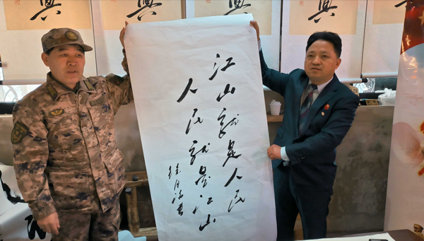 活動(dòng)現(xiàn)場,"紅色江山萬里圖——大別山卷"創(chuàng)作展成為焦點(diǎn)。這幅由多位軍旅書畫家歷時(shí)數(shù)月精心創(chuàng)作的百米長卷,以雄渾筆觸展現(xiàn)大別山革命老區(qū)的壯麗山河與烽火歲月。從鄂豫皖蘇區(qū)的硝煙戰(zhàn)場到劉鄧大軍挺進(jìn)大別山的歷史壯舉,畫卷將紅色地標(biāo)與英雄事跡徐徐展開,配合現(xiàn)場VR數(shù)字導(dǎo)覽技術(shù),讓觀眾沉浸式感受"江山就是人民,人民就是江山"的深刻內(nèi)涵。