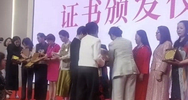 ![]() 唐偉與歐洲華人華僑婦女聯(lián)合總會第十屆理事會主席程玉芬為獲獎?wù)哳C發(fā)牌匾和證書 ![]() 為向世界傳播中華家文化工作者頒發(fā)形象大使牌匾
